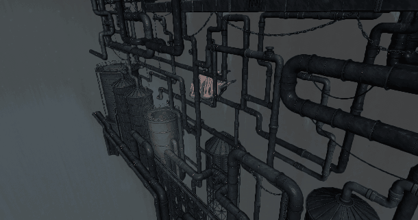 We built a fun little set for him to hide in. It looks something like this in-engine: